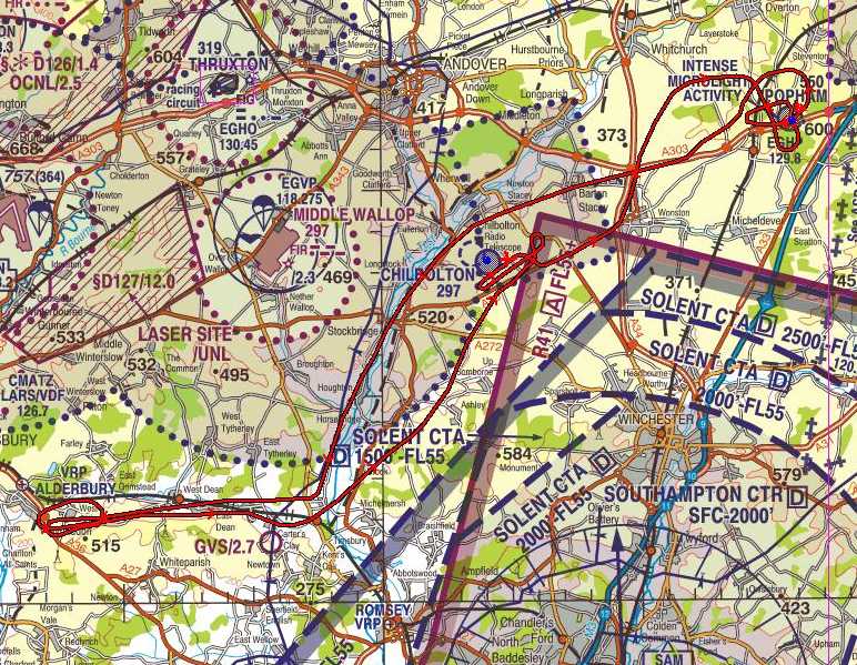 Ian lands shortly afterwards and we go into the little caravan for some tea and crisps. For the short return journey, I am in the other aircraft, being piloted by Jac (Colin's wife). We follow the A30 and then the A34 back to Popham a quick overhead join and down.