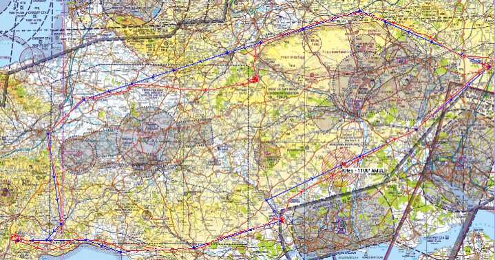 I fly the uneventful last leg home. I cut the corner, not bothering to go up to Blandford. We cross the NOTAMed Kite Flying area at a suitable height - not that anyone would have been able to fly one, with the lack of wind. We pass to the south of the Boscombe zone and up the between it and the Southampton zone back to Popham. Both of our second landings went OK.