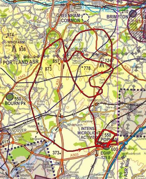 Try a bit of low flying but I'm still not comfortable with it. Then a loop round Highclere Castle and back down towards Andover. Rejoin and land on 21.