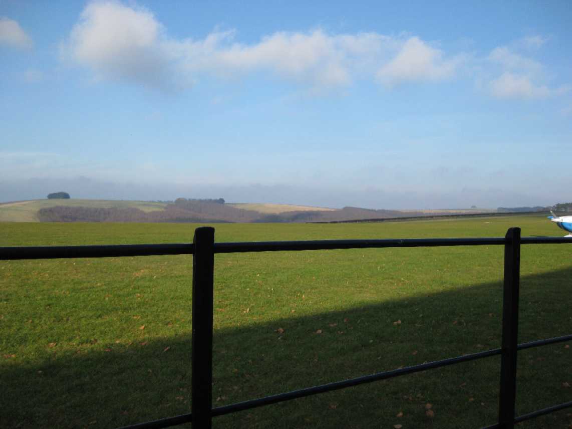 I find the airfield without a problem, but initially find the radio a little confusing as you can hear Sywell radio traffic aswell, because they are on the same frequency. An overhead join to the microlight circuit at 600' goes OK, but when I turn finals the airfield has disappeared! It's difficult seeing into the sun and haze, but I know the airstrip is over there somewhere and then I find it. It's a strange feeling approaching as not only are you descending, but the ground is also coming up to meet you, as the airfield is on top of a hill. Landing OK and I park up.