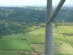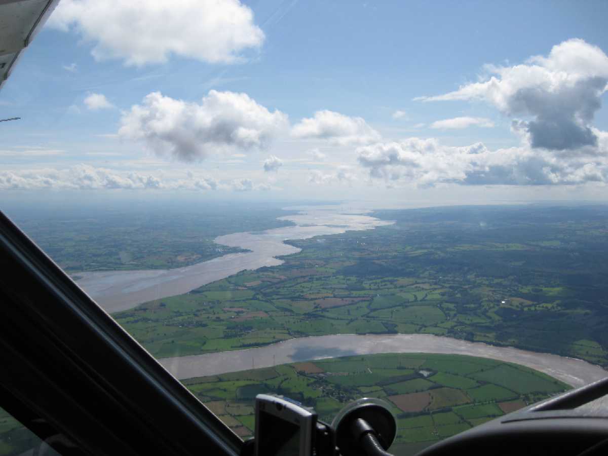 Unfortunately, once we are up the weather to the south doesn't look so good, so Colin decides to go straight back. We decide to go and have a look. The views down the valley are really pretty on the way down to Chepstow. There is a little light rain as we cross river next to the old bridge, but we are high enough to go over the power station if we need to divert north. We don't have to, but the weather is really poor in the direction of Bath, so we abandon that route and head east to pass to the north of Lyneham, to follow a similar route back as we came.