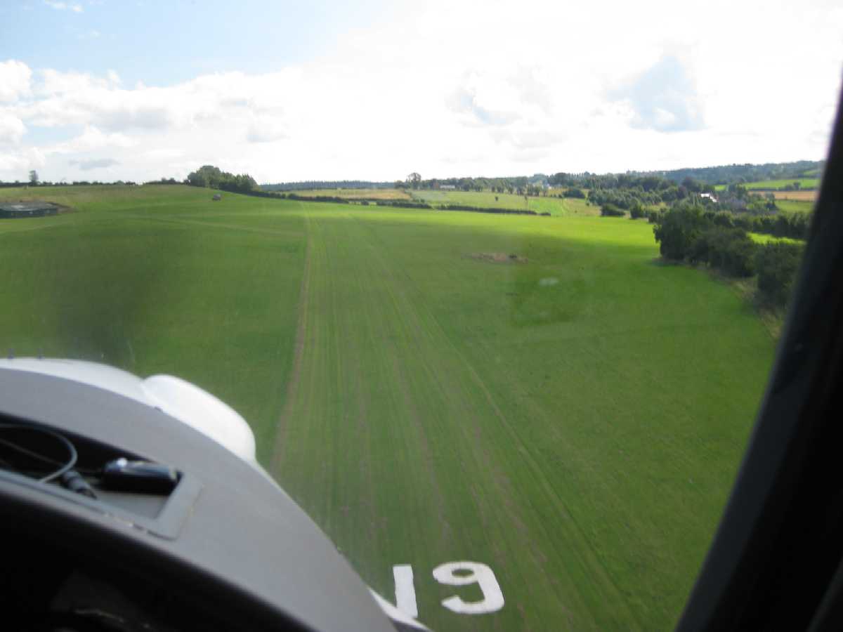 Spence has two runways for landing on - 19 (470m) and 06 (340m) which both have a pronounced upslope. Their reverse directions 01 & 24 can only be used for taking off and would be impossible to land on, whatever the wind direction. The wind is from the west, so we will land on 19.