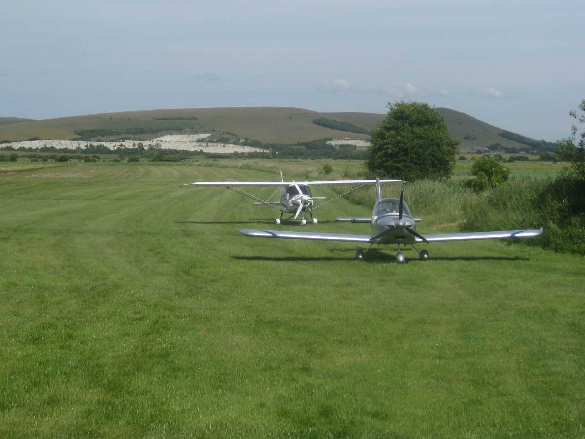 It's another two plane flight with Colin, Jac and Ian again today. The plan is to go to Chilsfold Farm, Swanborough Farm, Truleigh Farm and then back to Popham. These are all farm strips with very limited facilities. We have tried to go on this trip before, but the weather wasn't obliging. Again we have a plan to mix and match pilots and aircraft. All the target airfields are PPR, so we phone for Prior Permission - Chilsfold OK, Swanborough say we can land if there is someone there and Truleigh say that they have been hay bailing, but will get the bigger bails off the runway!