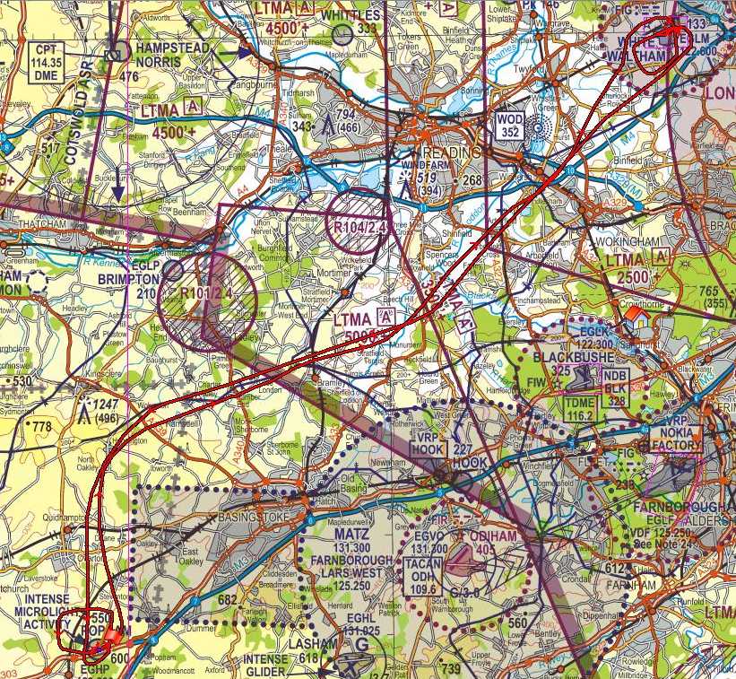 I thought that White Waltham may be a little enthusiastic for a single slot, but we were lucky to get the plane early as the previous pilot got the time wrong! Check and fuel and we're off on 08 with Ian at the helm. We head north to Hannington then west to M4 junction 10 - reporting point sierra for Waltham. Despite the poor visibility we see the airfield easily and join overhead. The are frantic calls as some muppet is trying to circuit in the wrong direction - the kind of pilot that gives microlighters a bad name. We join and when downwind, we can see them miles ahead, way outside the published circuit - are they abandoning their landing? We follow the correct circuit, but then they turn final (miles out) just as we do. Fortunately there is sufficient gap, so we continue our approach and land.