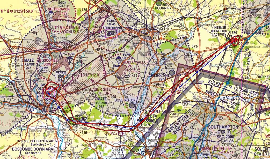 Nikki has the remaining Eurostar before us, and once she returns we fuel and prep it. Pretty soon we are on our way - not too far today so we're going to Old Sarum. Colin flies the C-42 (YR) and I pilot Jac - apparently she hasn't been flown by me before. There are some lowish clouds, that restrict our height to 1500' and this results in it being a bit bumpy. The vis isn't too hot either. We head down past Chilbolton and by the time we get to the south of Middle Wallop and turn west, the cloudbase has risen a bit. I call Old Sarum at Alderbury and we then head north and join from the deadside. Circuit and landing isn't too bad.