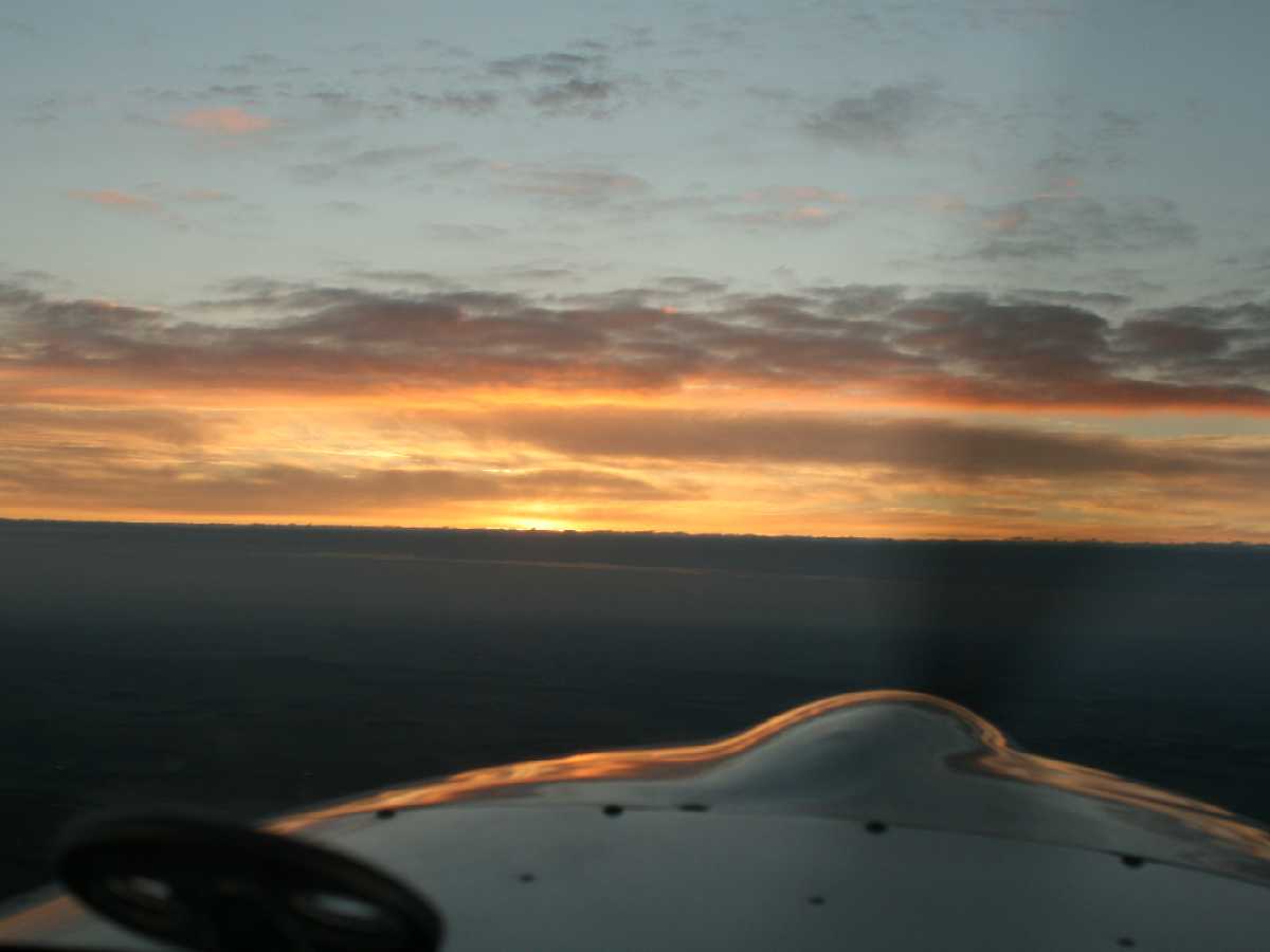 Well at least I'm not late. When I booked the plane I said that I was on my own and therefore had a spare seat, but it seems no-one took it up. I prepped the plane as the sky began to get lighter. As soon as it was legal, we lined up on 03 and took off.