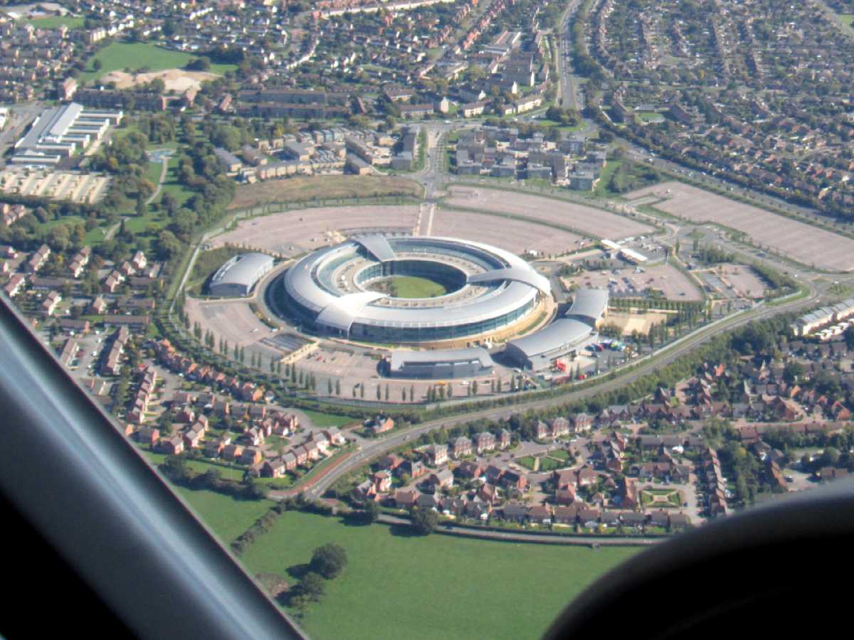 Early start (well, early for me) and we check-over the planes and get them out. Quite lucky to have the two newest C-42's - Jac comes with me in G-HP and Colin with Ian in G-AN. The others choose to go through Lynham, but my route planning is based on a previous plan that avoids Lynham zone and I hurriedly draw the lines on my chart (PLOG already done). We take off on 03 and head north west ish towards Uffington Horse - haven't been to see this favourite landmark for ages. The air is really smooth and we can fly completely hands-off. After a quick look, we continue round the windfarm and then turn west towards Kemble, through the (inactive) Fairford MATZ. As we pass below the clouds, is gets a bit more bumpy, but not bad. At the lakes we turn north between Kemble and South Cerney and change frequency to listen to Gloucesterhires ATIS. As we converge with the dual carriageway, I swing across to get on the right side of it. We are instructed to join overhead and report at 3 miles (which we do). Boy are they busy, using only a single frequency for approach/tower/ground - we're told to report downwind, but there doesn't seem to be any gaps to do this - I make a hurried late-downwind call, but not too sure if it's heard as we get no reply. Someone else has gone a long way downwind, so I go to a similar distance so we have some separation. I eventually get a final call in and told to continue approach - this is not clearance to land. There are aircraft landing both on 36 (including us) and some on 27 - and someone is on final for 27 and we are told to continue for late clearance. The plane lands and then we're cleared to land. Once down I expected to turn right on 27 to go to the parking, but there is another aircraft on final on 27, so we continue past the intersection to the end - this of course takes time, so Ian (who is coming in behind me) has to turn into a low hop and then land after I get off (sorry Ian). We go the long way round the taxiway, but Ian can go down 27, so gets to the parking before us.