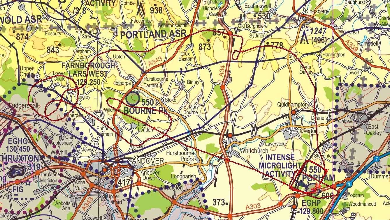 (altitude) triangle to the north of Andover, between the FL65 airway over Popham,