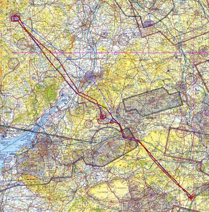 So I get the long leg back to Popham in the C-42. I take off and have to wait until we have cleared the ditch before turning crosswind. The route back is pretty much that same as the outbound, except passing to the north and east of Kemble.