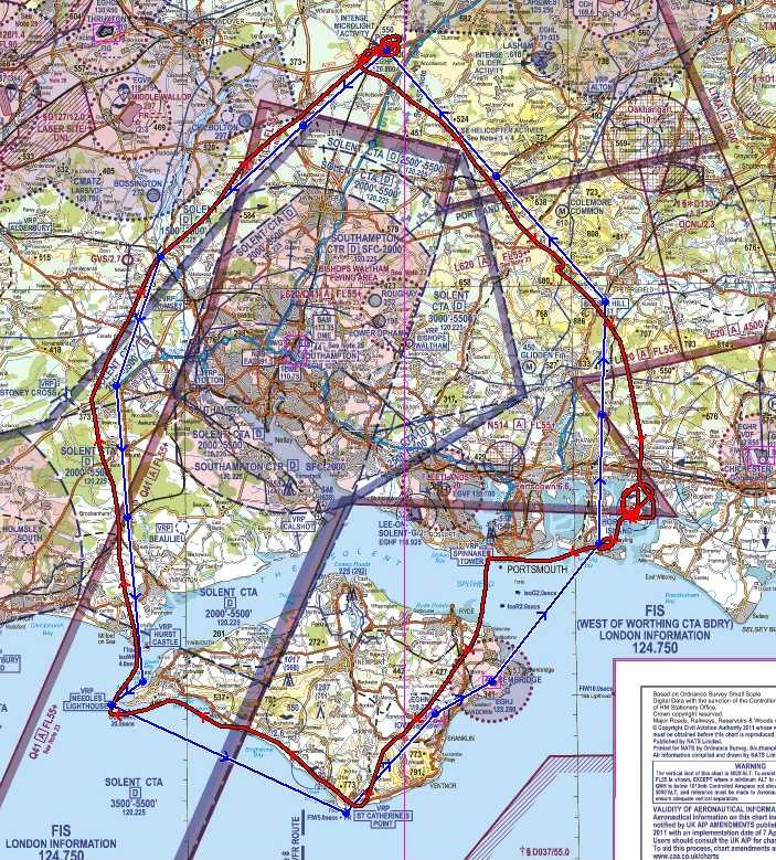 crossing the Solent and pass Hurst Castle. Then over the New Forest and up the