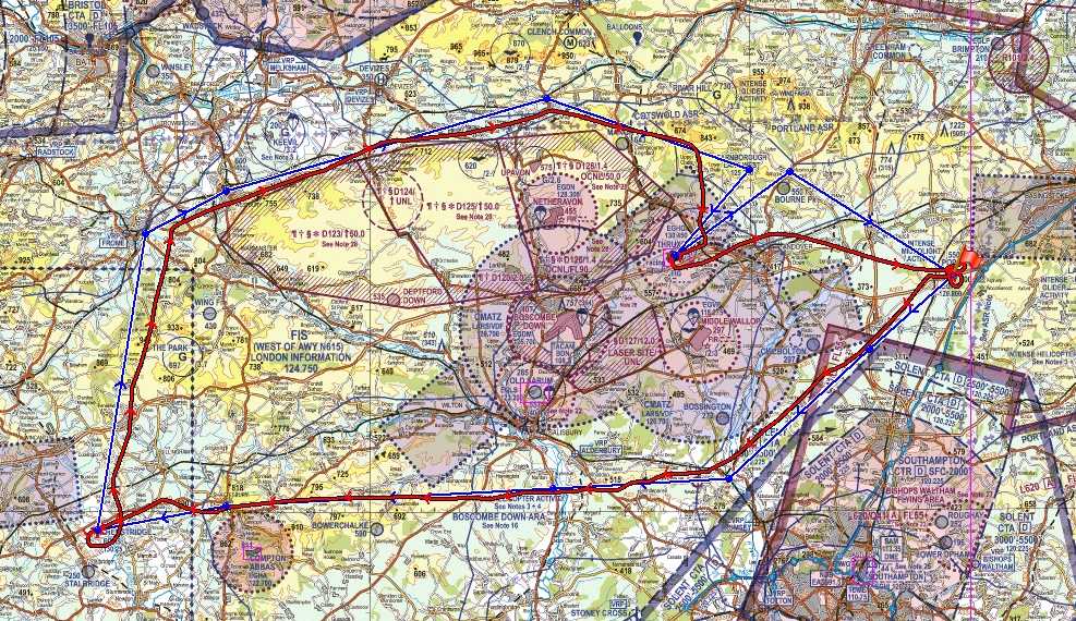 It takes a wee while, but we are on our way, with me in the left seat taking off on 26. We head off past Chilbolton, down the gap between Boscombe zone and Southampton airspace. Then heading west there is a patch of heavy smoke coming from a wood near Alderbury - we go to investigate and decide it is probably charcoal making. The visibility is also quite good, but the progress is quite slow punching into a headwind of about 30 knots. For some reason, this area has few significant landmarks or discerning features, but finding Shaftesbury means we can ensure we are out of Compton Abbas ATZ. I make my call from Shaftesbury and I can use the A30 to line myself up for the airfield before I can even see it. I'm doing a straight-in approach and make my "final" a little way out, although it is definitely in the final zone. Another aircraft calls base then final, bit is safely in front of us. There is a significant gusty crosswind which is a bit more than I expected. A quick burst of power required when the airspeed suddenly drops and fortunately I predict the drop in sidewind effect as we touchdown reasonably smoothly. We park up on the grass and a chap in a Rans comes over and suggests he owes me an apology for cutting in front of me. I explain that there is no need as there was no issue and there was plenty of separation.