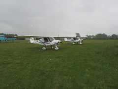 Well it's not too good, but flyable - described by Roy as being 'sporting'. The cloudbase seems to be up to about 2000' but patchy. There is some rain about too. It is also quite windy/gusty so not such a good day for Eurostars. As some others have bloused out, Graeme kindly re-organises the planes so we can take two C-42's. We consider local runways that are best matched to the wind direction - possibly Brimpton, but we opt for Old Sarum.