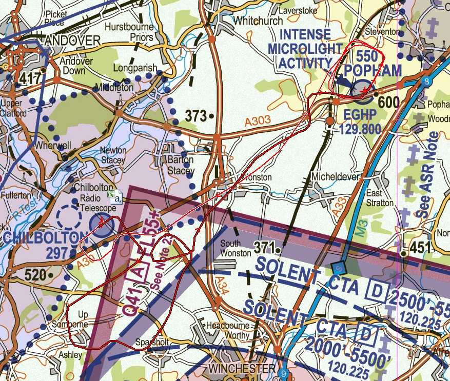 It's the Microlight Trade Fair on at Popham this weekend. We don't normally book aircraft for this weekend; not just because the airfield is exceptionally busy, but also the planes are needed for running trial flights by Airbourne. We therefore plan to fly on the Friday night, but sadly the weather isn't great with poor visibility and low cloudbase. However, it isn't hopeless and given that I haven't flown for a few weeks, I nip out of work early and head to the airfield.
