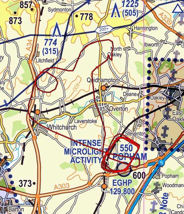 I checkover and get the plane out. I stick some fuel in it and soon I'm lining up on 21. During climbout there is a little turbulence from the Black Woods but not too bad and soon disappears with height. I head off to the north and re-familiarise myself with the controls as it has been about ten weeks since I have played with them. Soon because natural. I try some steep banked turns and have the gratification of the twitch as I go though my own wake turbulence - must have got that right. I then decide to practice circumnavigation a fixed point - not too bad, but it wasn't the wind that makes it difficult, but the restricted view downwards (compared to the C-42). Then down to Whitchurch and then back to the airfield for some circuit practice.
