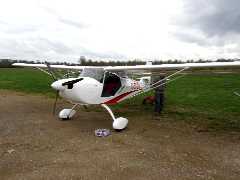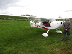 We then drive back to Popham in the hopes it will have improved - it had. We decide to do a quick bit of practice in whatever plane is available and warmed up - no point warming up another plane if it isn't necessary. Roy comes back in G-HP with a trial flight and we take this as he has finished for the day. After adding some fuel, Ian takes the first run. From runway 21, he takes off and does one touch-and-go and then a full-stop landing. It seems to be getting dark quite quickly, so we swap over and I have a go. It gives me a chance to compare the handling with the EuroFox The elevator seems to be about the same, but the C-42's ailerons are less responsive. However, I think the rudders are nicer. I do a couple of T+G's and to a zoom climb on the last take-off and then we call it a day.