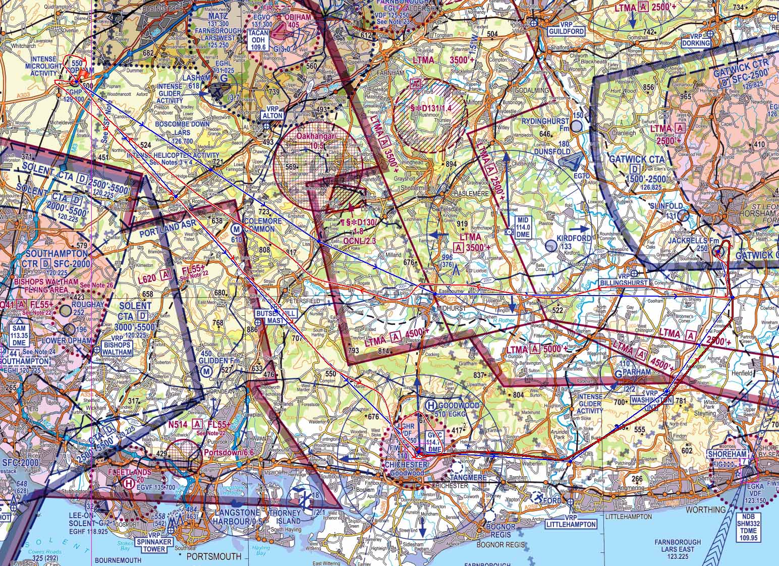 before entering the Gatwick zone and avoiding local houses. There are two huge
