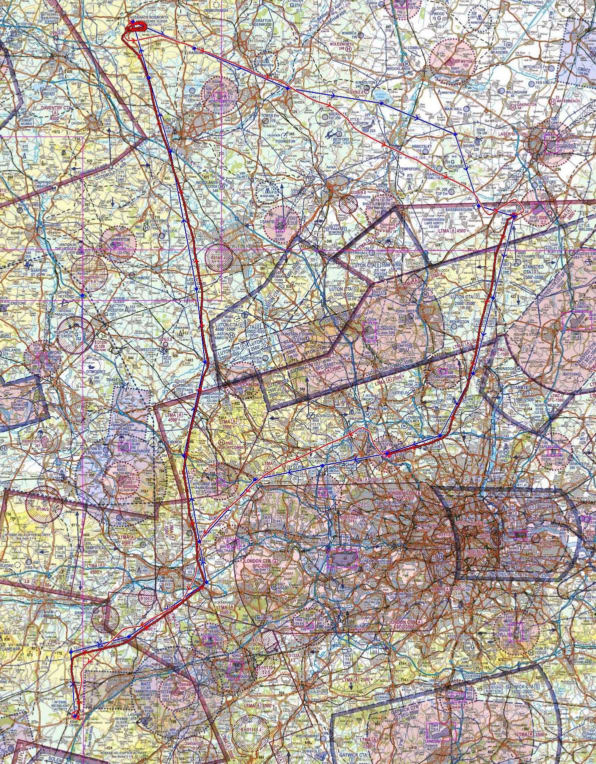 leg. We head south and under the Luton/Stansted airspace and it's a bit claggy.