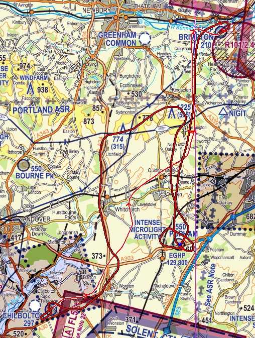 towards Popham, we change to Popham frequency and hear Colin calling saying