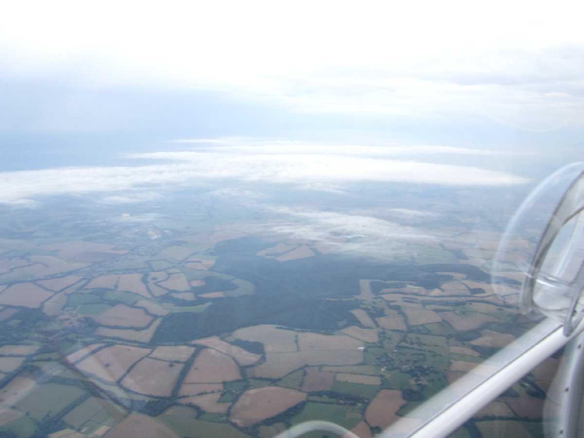 Later on it has cleared up a bit, rather than getting worse. We decide to go for a quick flight to Chilbolton - Ian's turn this time. We take off and head south west. The inversion layer is even more pronounced now. Ian joins downwind for an exploratory fly-by first before landing. On the second go he isn't happy so goes-around - always a mark of good airmanship. We landed on the third, parked up and had some tea and chat. We also examined their nice new hangars (rather jealous). Eventually we head back to Popham and put our toys away.