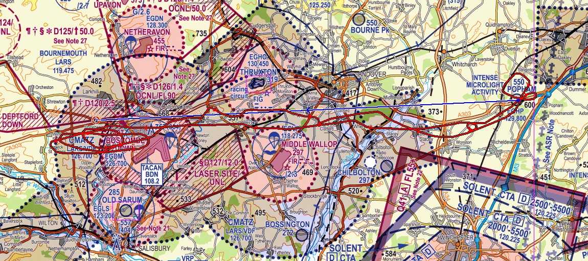 I have a go at some stalling which is all very tame and predictable. Then some tight turns and gently dives etc. - fun. Then back to Popham for a reasonable landing.
