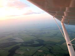 I take off and head north to the "playground". I am marginally surprised how familiar it seems to me, but then I have got over four times as many hours on the C-42 as the EuroFOX. As Steve has said, the C-42 has more centralising force for the ailerons, but equally the force required is significantly higher. I had a think about this later and then it became obvious - the hinge point of the flapperons is about 1/3rd of the way back from the leading edge, where on the C-42 and Eurostar, they are by definition at the front of the aileron. This explains why it is more balanced and lighter controls on our EuroFOX, but also implicitly less restoring force.