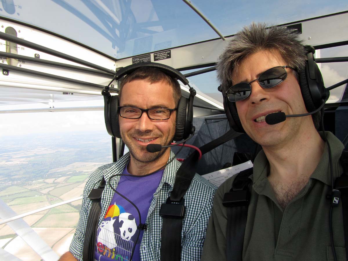 When we get to the airfield, it is quite busy, but not problematically so - not as busy as the trade fair weekend. After fuelling and checking the plane we are soon trundling down the taxiway towards the threshold of runway 21. Like many new passengers, Istvan is surprised about how quickly we get off the ground - that's the wonder of these lightweight machines.