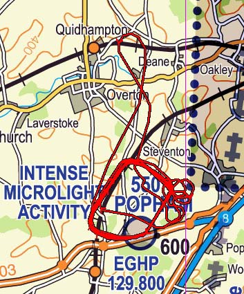 safely above them. Lovely view! I am above Popham, so I then do a big spiral