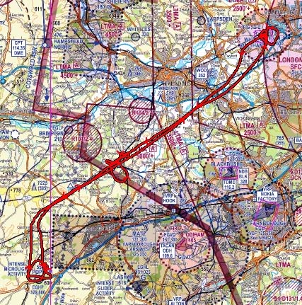 I checkout the plane and I am in luck - it has plenty of fuel in it. The wind is pretty much straight down runway 21 but quite strong, so I need a target airfield with a similar runway direction - White Waltham fits the bill and so I give them a call for PPR. I wanted to actually go somewhere on my own rather than taking the easy option of just flying around.
