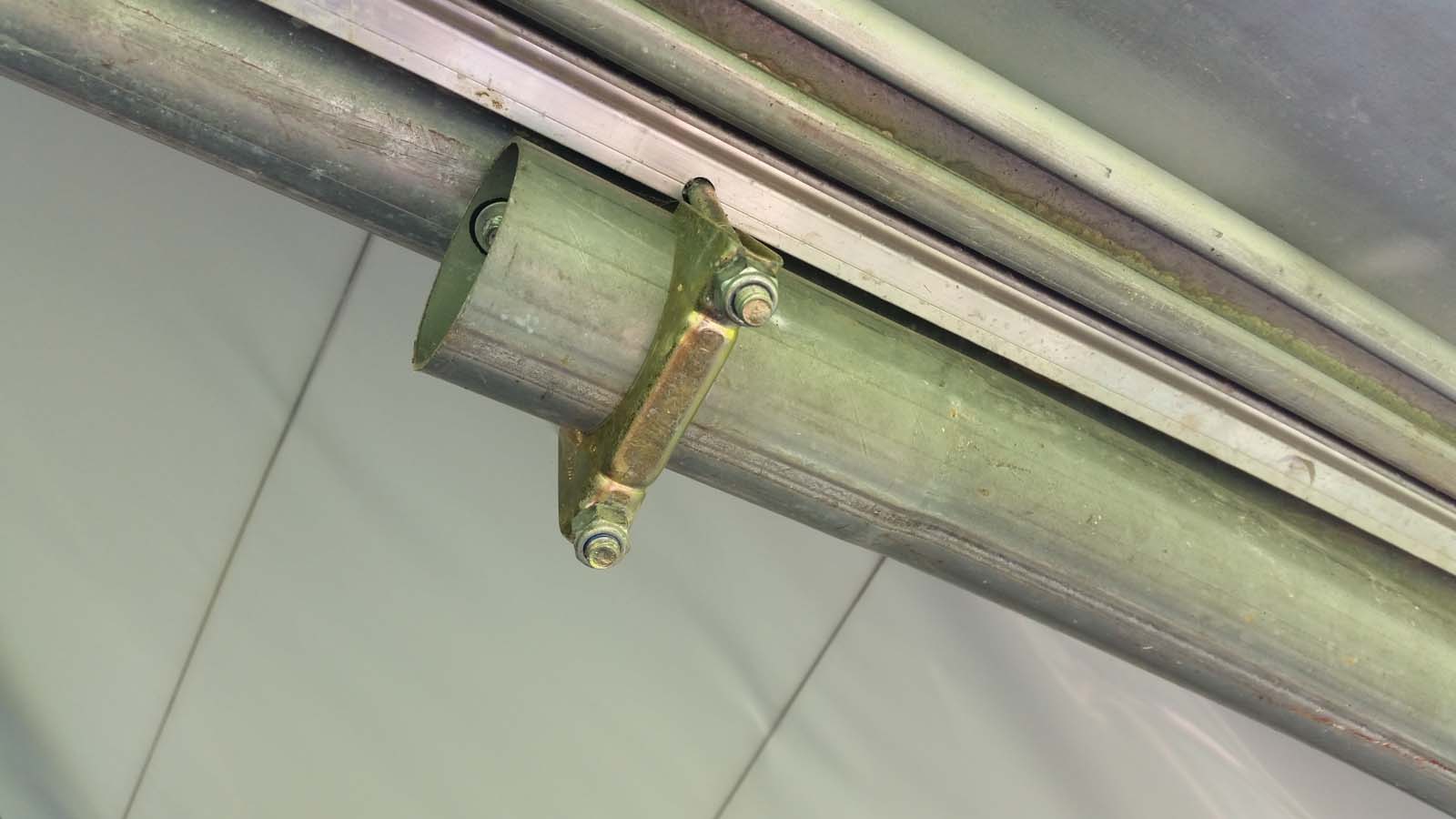 of U-bolt brackets, which can catch on the top edge of the material of the door,