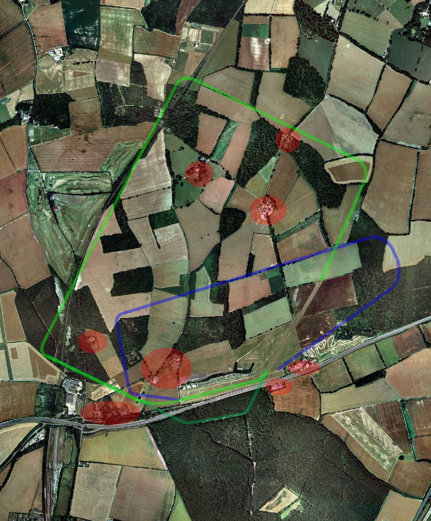 Pretending to be a conscientious student I have been looking at the circuit diagram and aerial photographs of the area. I have even put many multimap aerial photos together and superimposed the circuits over them and tried to study these to memory (see picture here). The trouble is that when you are climbing out of the airfield with the planes nose in the air, it is difficult to see the ground below you, let alone recognise it.